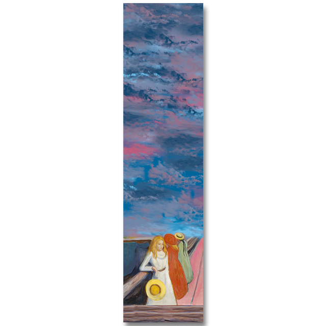 Das berühmte Motiv entfaltet auf dem feinen Gewebe seine ganze poetische Wirkung: sanfte Farbverläufe, eine stille Spannung und jene unverwechselbare Atmosphäre, für die Munch bis heute geschätzt wird.