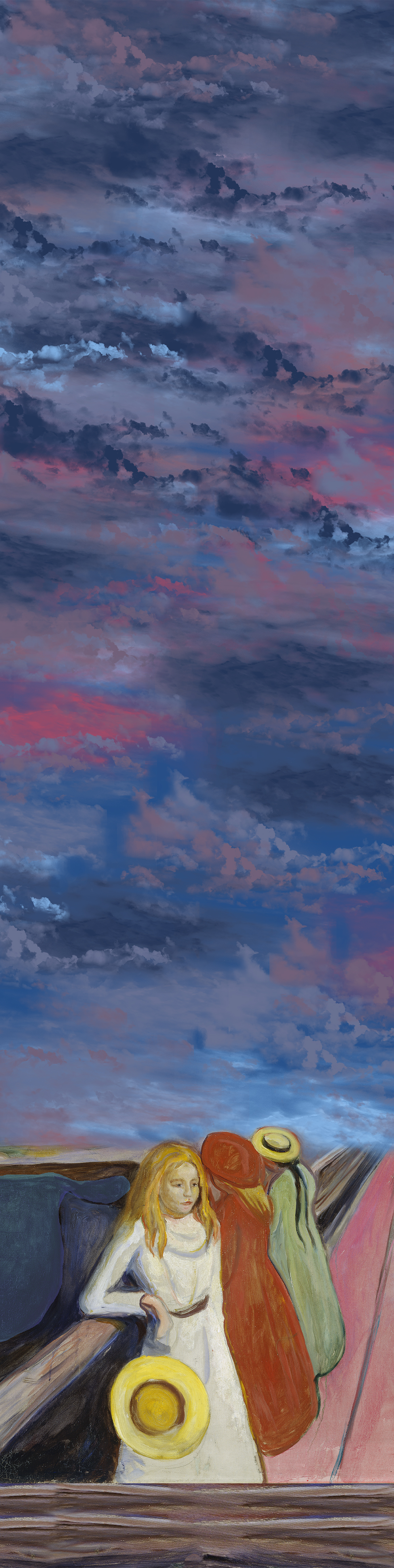 Der Schal Mädchen auf der Brücke ist eine Hommage an die emotionale Bildsprache von Edvard Munch und wurde exklusiv für die Freunde der Kunsthalle produziert. Damit ist er nicht nur ein stilvolles Modeobjekt, sondern auch ein besonderes Sammlerstück für Kunstliebhaberinnen und -liebhaber.